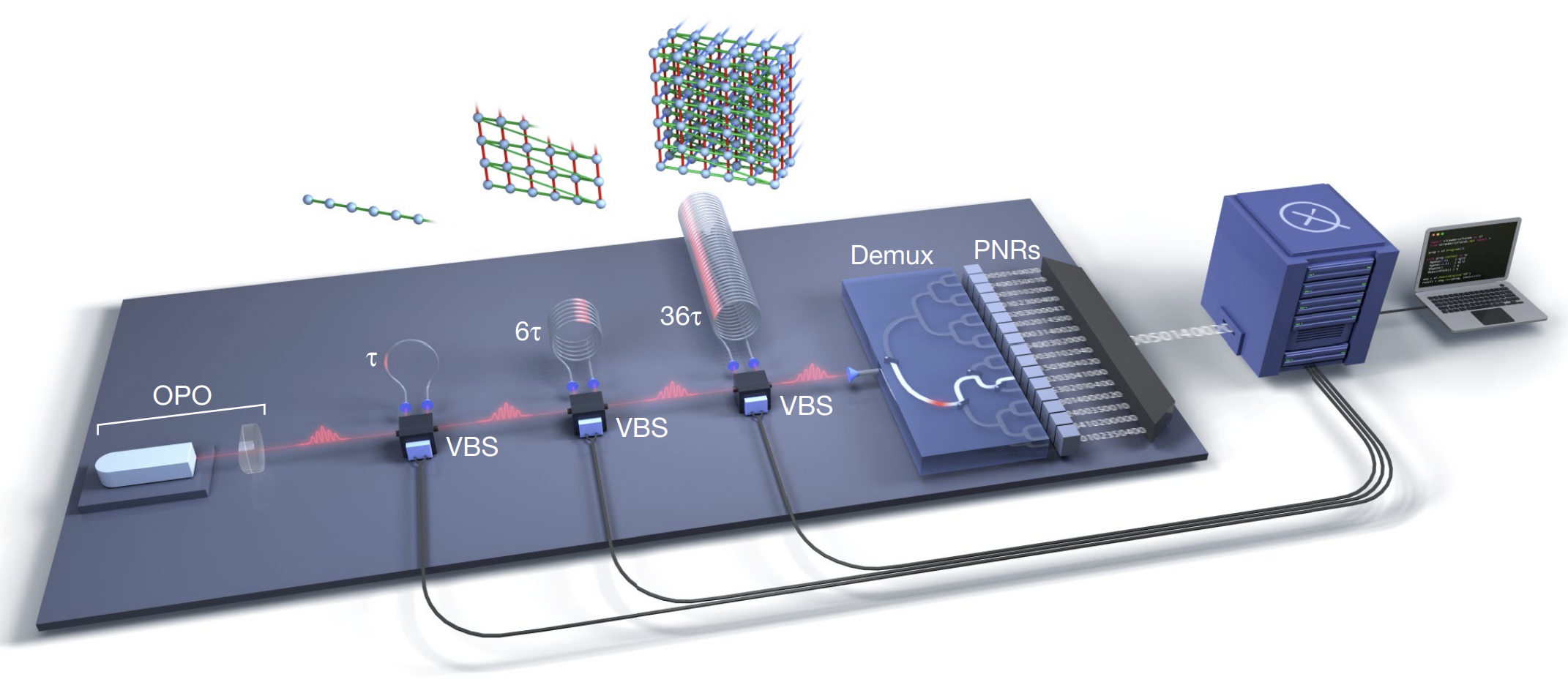 Christian Weedbrook: exactly. The other thing, too, is that we show the GBS demonstration (setup below) that you mentioned where we show quantum supremacy. It is continuous variables. We’ve always had the goal of going to full fault tolerance and error correction using continuous variables. The GBS system which served to show some quantum supremacy will become a part of our fault tolerant quantum computer. The GBS system is how you actually make GKP qubits or photonic qubits in our case. Very similar to what I mentioned, you have these squeezed states, we mix some using interferometers, and then you measure a subset, and then it pops it or collapses it into a GKP state. Then it’s a two-level system. And we have the ability to do error correction and fault tolerance. The continuous variables is still an important part, but the overall 2022 demonstration was a stepping stone to full on fault tolerance.