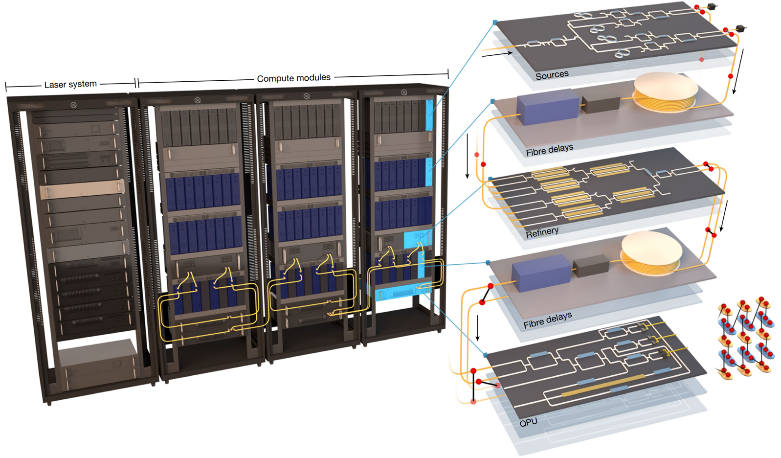 Olivier Ezratty: in the Nature paper, the sizing of what you would need to scale was kind of enormous. It mentions thousands of fracks would be needed. Tell us about that because I presume that you have a lot of things in your roadmap to improve losses and efficiency all along the path of the photon to get down to a more reasonable number of racks.